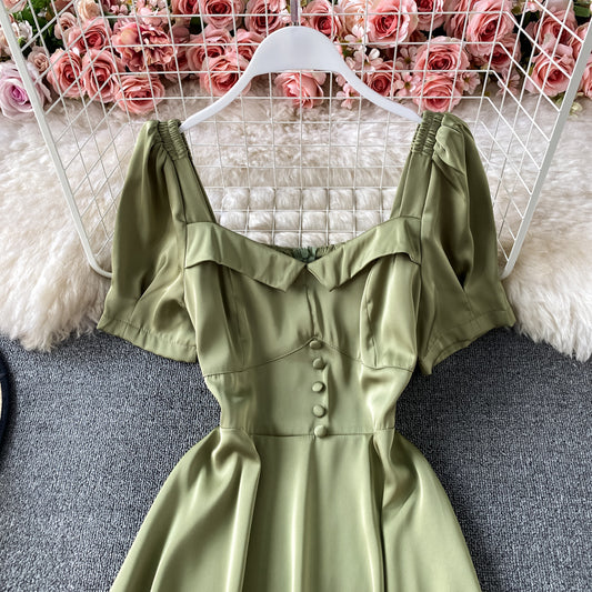 Robe taille fine, style étranger, manches bouffantes, col carré 3045
