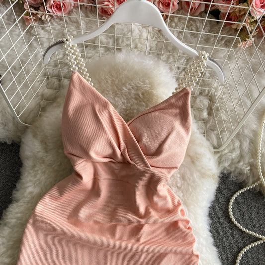 Robe courte à bretelles slim avec motif de pompon et machine à sentir les rides 3051