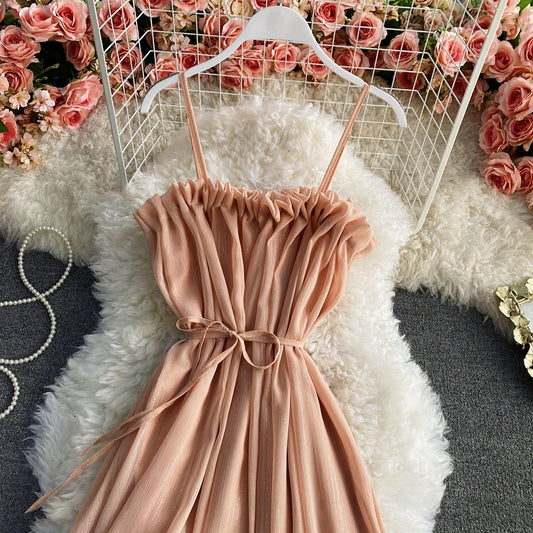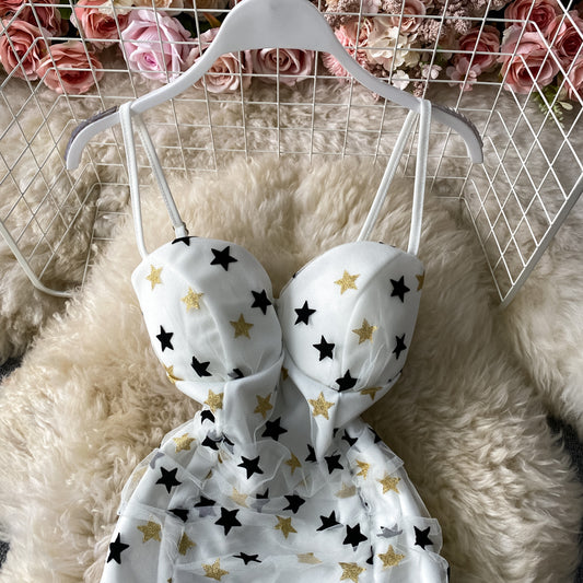Robe bustier plissée à bretelles en maille étoilée 3032