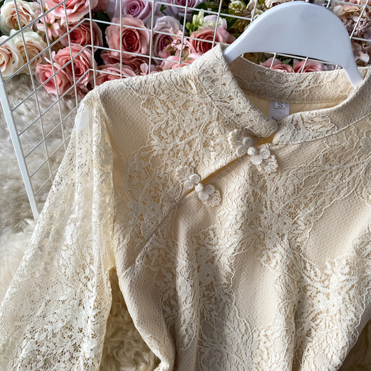 Robe vintage en dentelle à col montant de style familier léger Hepburn 3038