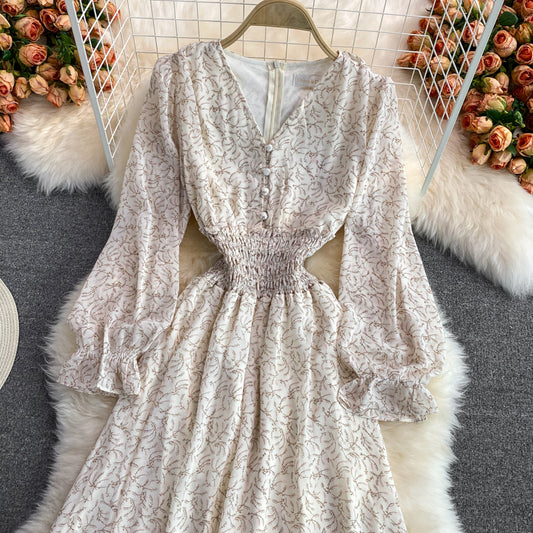 Robe fleurie à col en V et manches bouffantes Royal Sister 2993