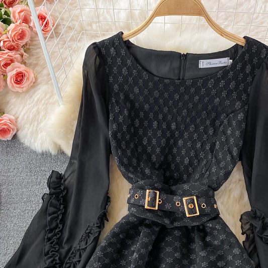 Robe à volants à col rond et taille haute 3003