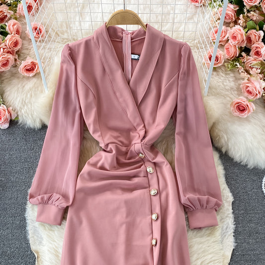 Robe col V jupe fendue atmosphérique haut de gamme 2999