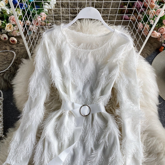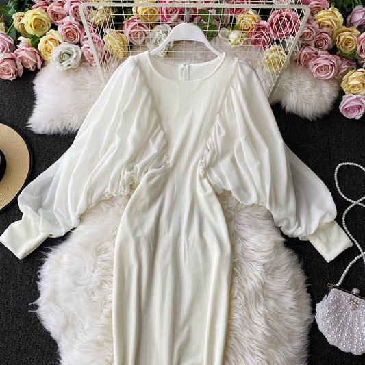 Robe moulante à manches bouffantes et découpes en dentelle de style étranger 2891