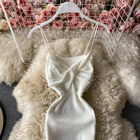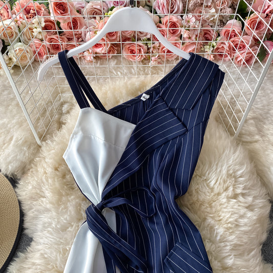 Robe trapèze sexy à bretelles irrégulières et à rayures cousues, coupe slim, épaules dénudées 2883