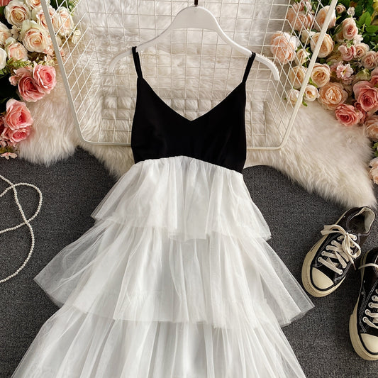 Robe à bretelles à col en V et jupe bouffante Cake Super Fairy 2884