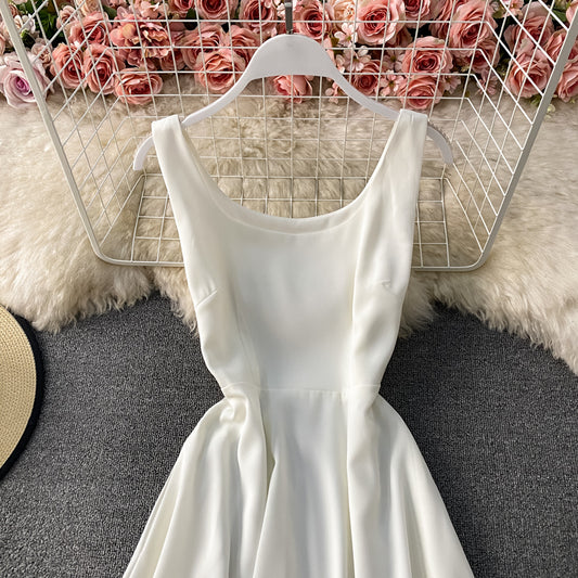 Robe rétro douce fermée à la taille et au dos nu avec épaules dénudées 2889