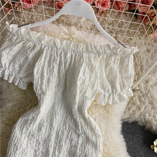 Jolie petite jupe à bretelles fraîche taille haute dos nu en dentelle 2893