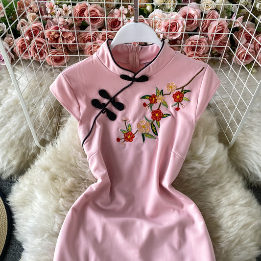 Jupe cheongsam rétro col montant boucle broderie fleur de prunier 2754