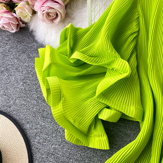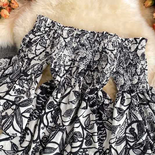 Robe à volants avec épaules dénudées et sac à bandoulière exposé 2748