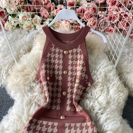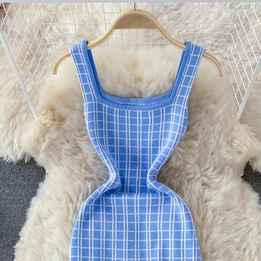 Robe en tricot à carreaux slim avec jupe en une étape 2755
