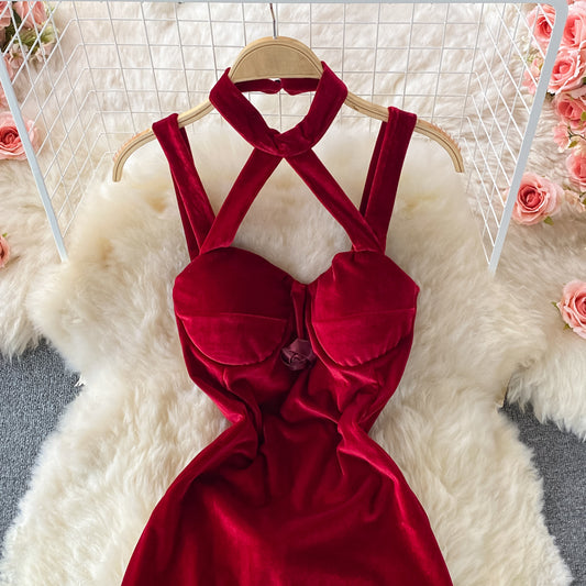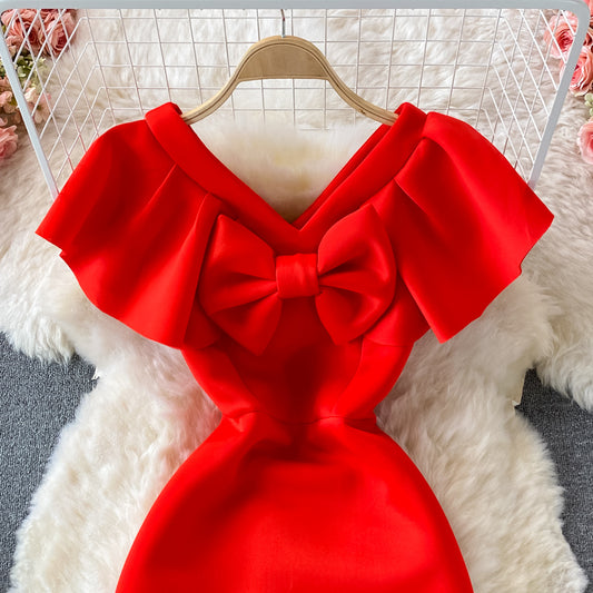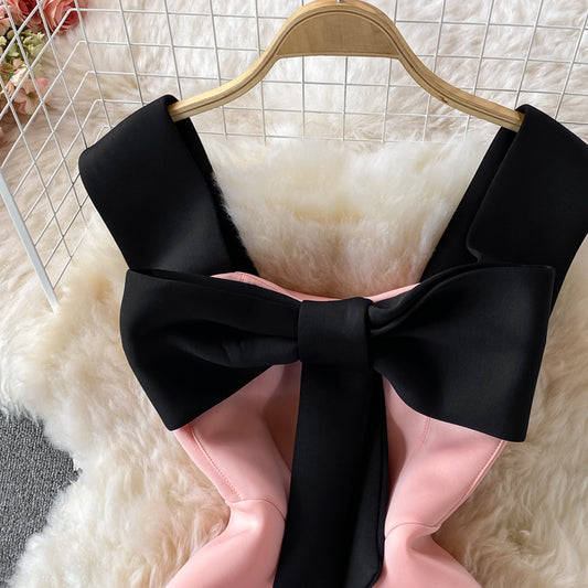 Robe de célébrité de luxe légère, dos ouvert, jupe à bretelles, grand nœud, coupe slim 2730