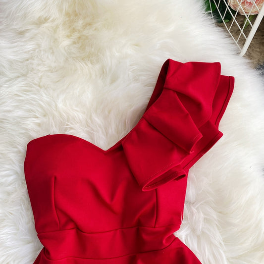 Robe sexy à col diagonal et épaules dénudées unilatérale 2738