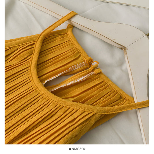 Jupe longue plissée à bretelles de couleur unie avec col suspendu et épaules dénudées vintage 2680