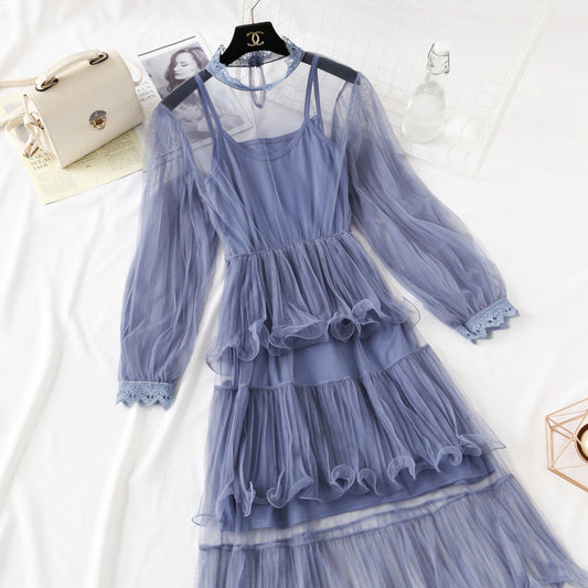 Jupe de poupée rétro de minorité française robe de gâteau en maille de dentelle de l'industrie lourde femme 2468