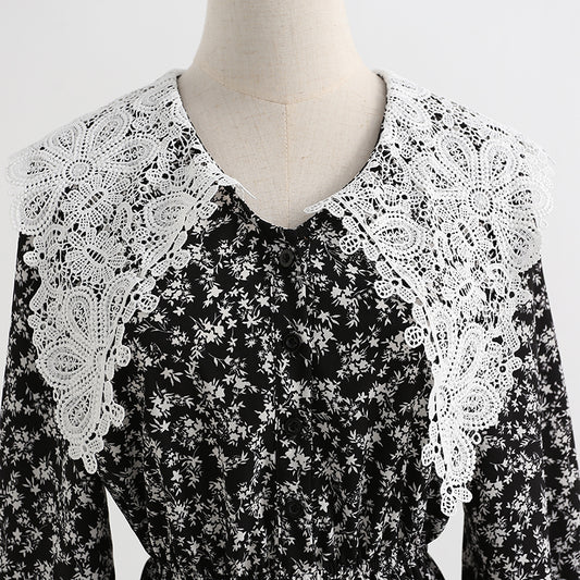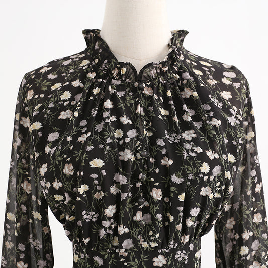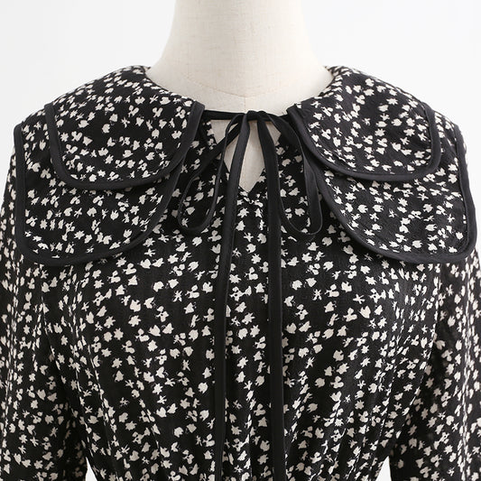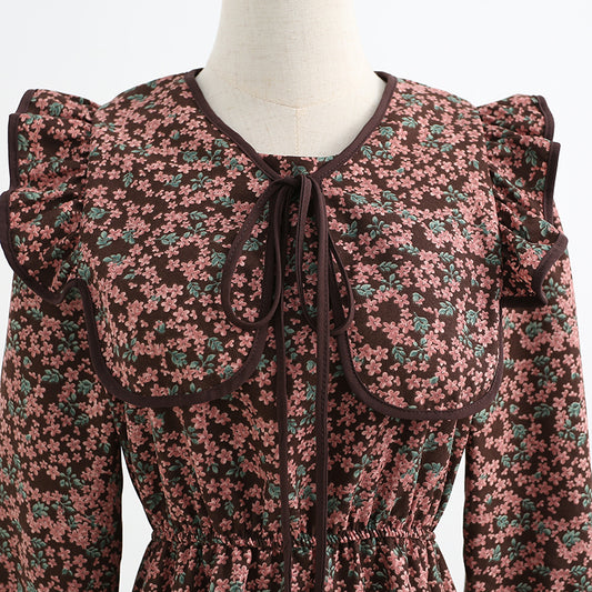 Nouvelle robe fleurie coréenne à manches longues et col de poupée 2439