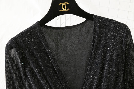 Robe à gâteau scintillante en maille cristal à col en V Temperament 2448