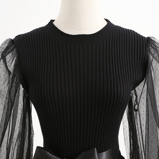 Robe tricotée cousue style Hepburn petite jupe noire montre une jupe à fond de tempérament mince 2437