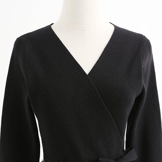 Robe en laine ample et ajustée à manches longues sur le genou, jupe tricotée à fond long 2445