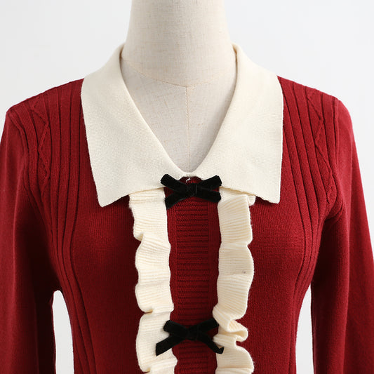 Nouvelle robe de style Hepburn à manches longues en maille brodée cousue 2442