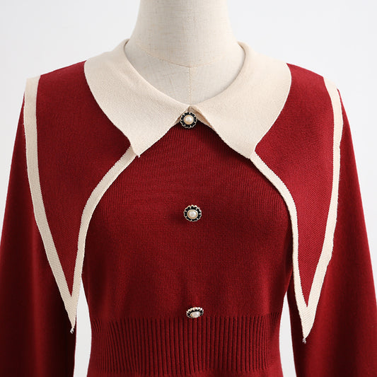 Robe rouge, robe tricotée, petite et fine, avec une jupe à fond à l'intérieur 2441