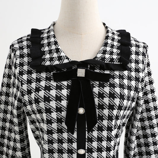 Robe en tricot à taille fine en treillis Qianniao pour femme, jupe taille haute avec bas 2342