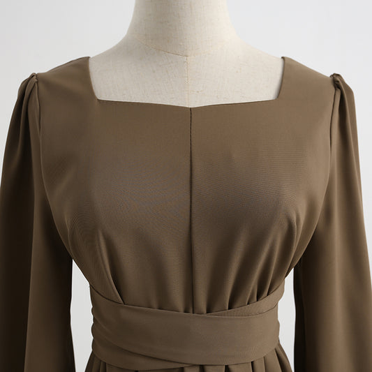 Robe noire à col carré de style déesse du tempérament 2341