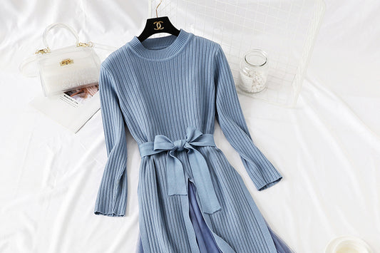 Robe en tricot cousu jupe à fond rétro dame tempérament jupe mi-longue 2343