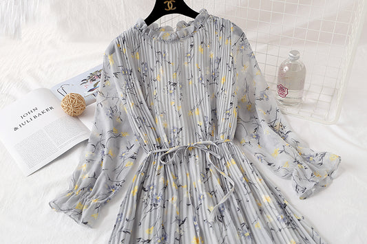 Jupe plissée en mousseline à manches longues, ample et fine, jupe rétro longueur genou 2346