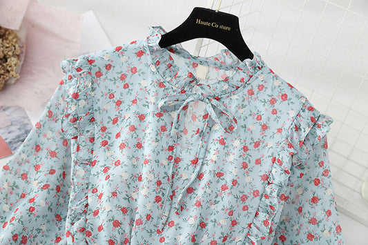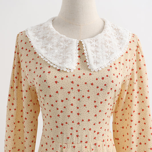 Nouvelle robe fleurie vintage en mousseline de soie à col de poupée pour femme 2250