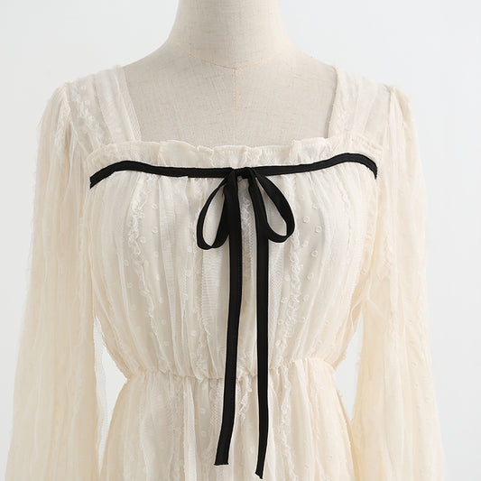 Jupe tempérament de nouveau style à manches longues avec fermeture à la taille, jupe douce et amincissante 2252