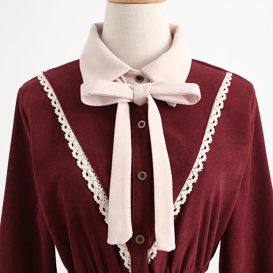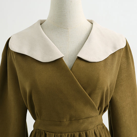 Nouvelle robe française Hepburn lampe à vent jupe en velours côtelé jupe à col bébé 2239