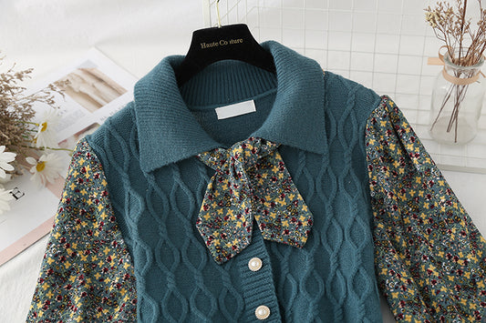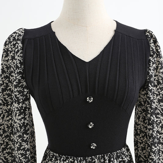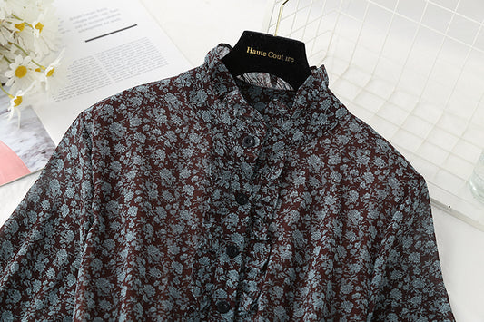 Nouvelle robe fleurie slim à boutonnage simple pour femme printemps et automne 2242