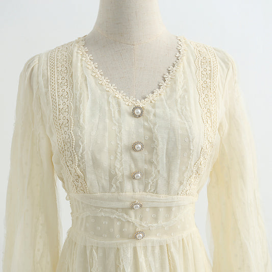 Nouvelle jupe pour femme rétro couture dentelle fée jupe tempérament robe douce 2247