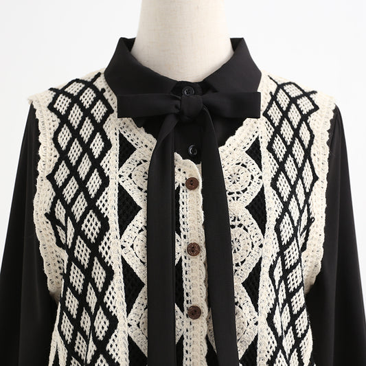 Nouvelle jupe longue rétro en tricot noir cousu jupe premium 2238