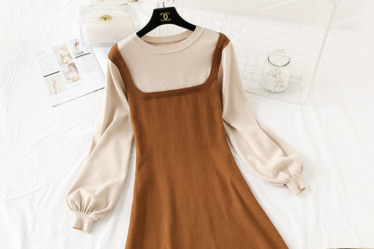 Pull vintage à bas jupe longue couleur assortie coupe slim faux ensemble deux pièces 2143