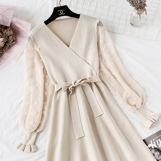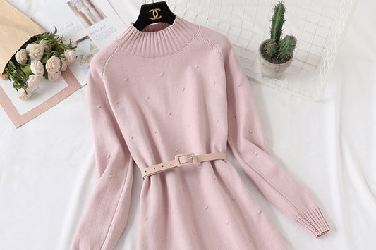 Robe pull tricotée pour femme, nouvelle ceinture française, look fin et rétro Hepburn 2147