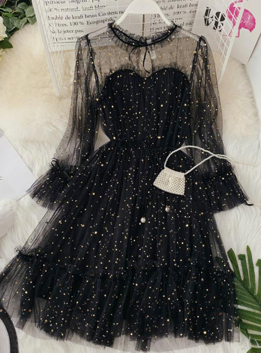 Jolie robe d'été en tulle à paillettes et étoiles 1176