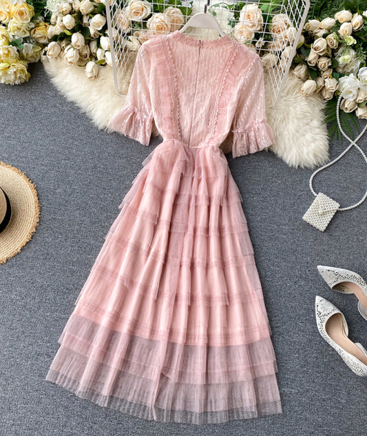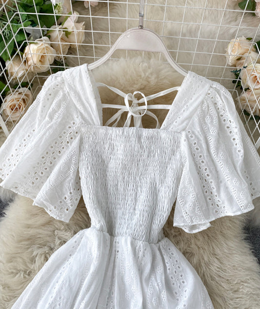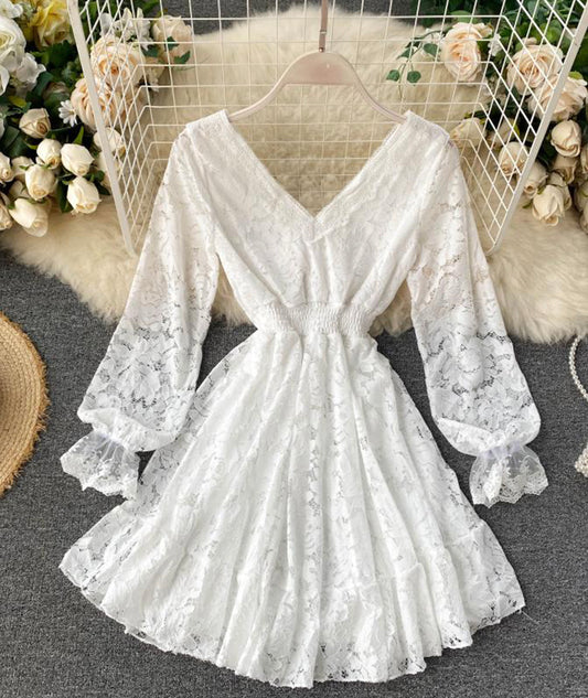 Robe courte en dentelle à col en V mignonne robe en dentelle 1039
