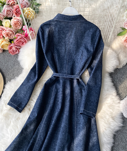 Robe boutonnée à manches longues et ourlet à volants 1041