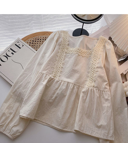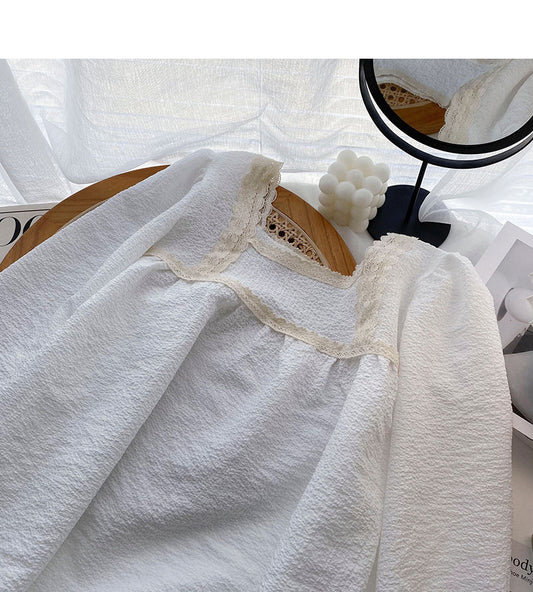 Chemise fine à col carré et bordure en dentelle vintage au design sensuel 6274