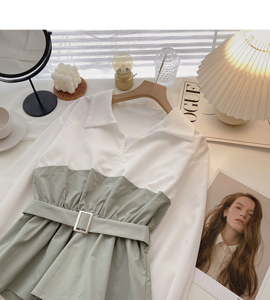 Haut coréen à manches longues et ceinture assortie de couleur 6284
