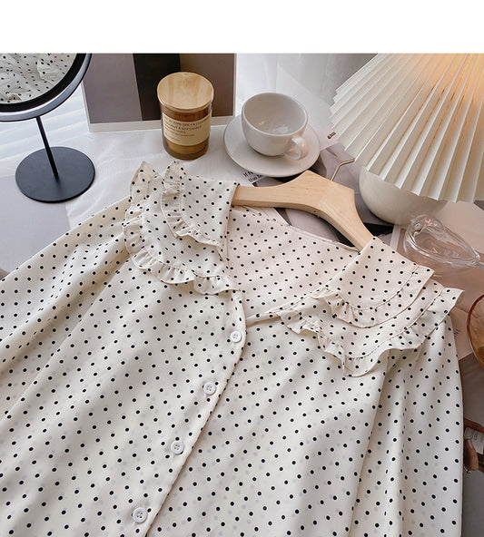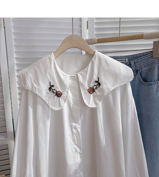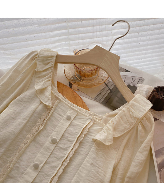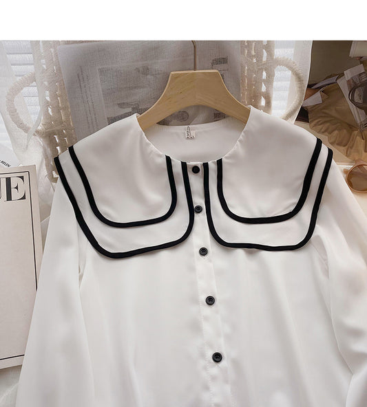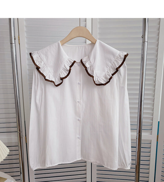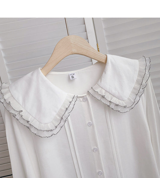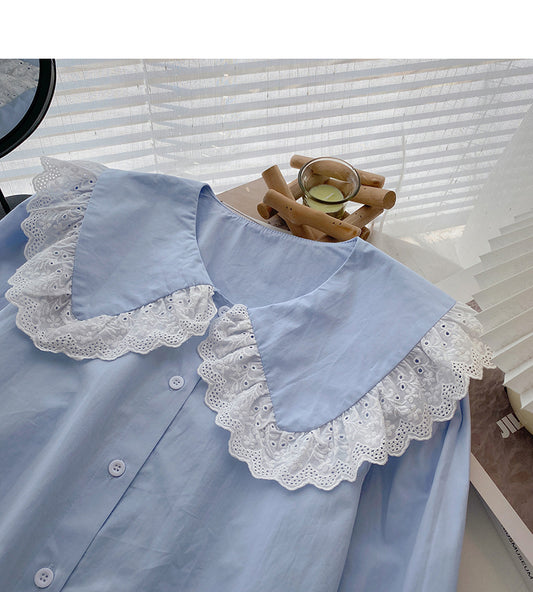 Chemise en dentelle à col bébé vieillissante haut à manches longues mince mode 6411
