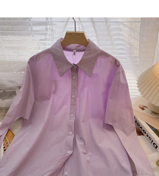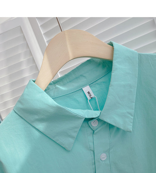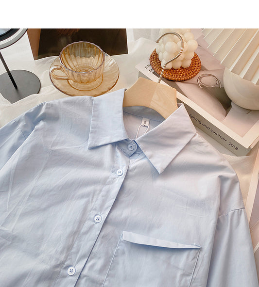 Chemise à manches longues unie, haut cardigan à revers simple et polyvalent 6417