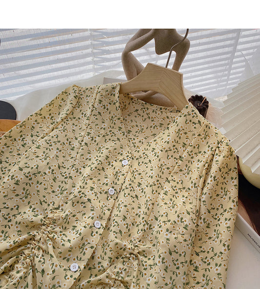 Sens du design de la chemise à fleurs de style étranger avec cordon de serrage 6412