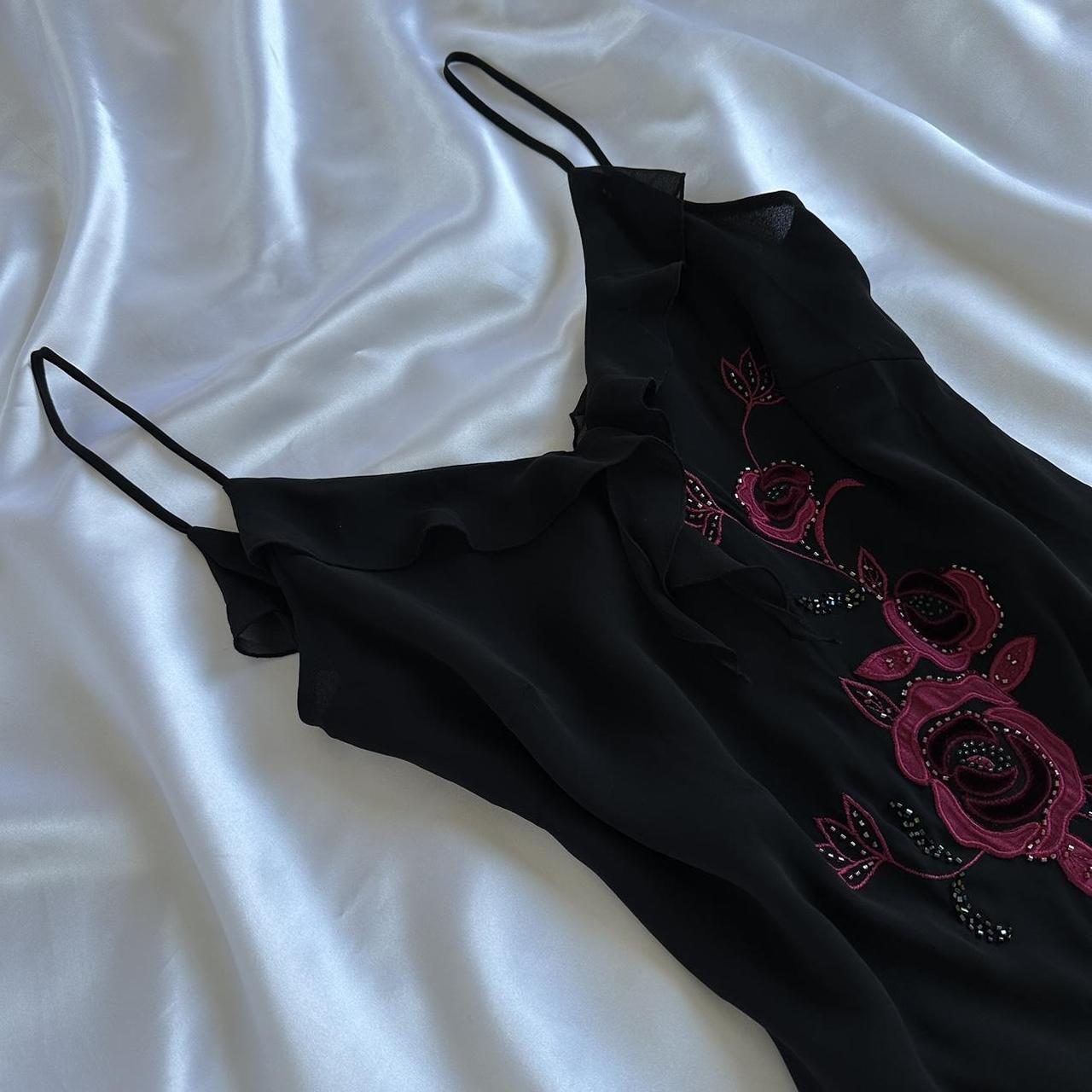 Robe de soirée longue en mousseline de soie, élégante et délicate, motif floral rose rouge, perlée, gh3691