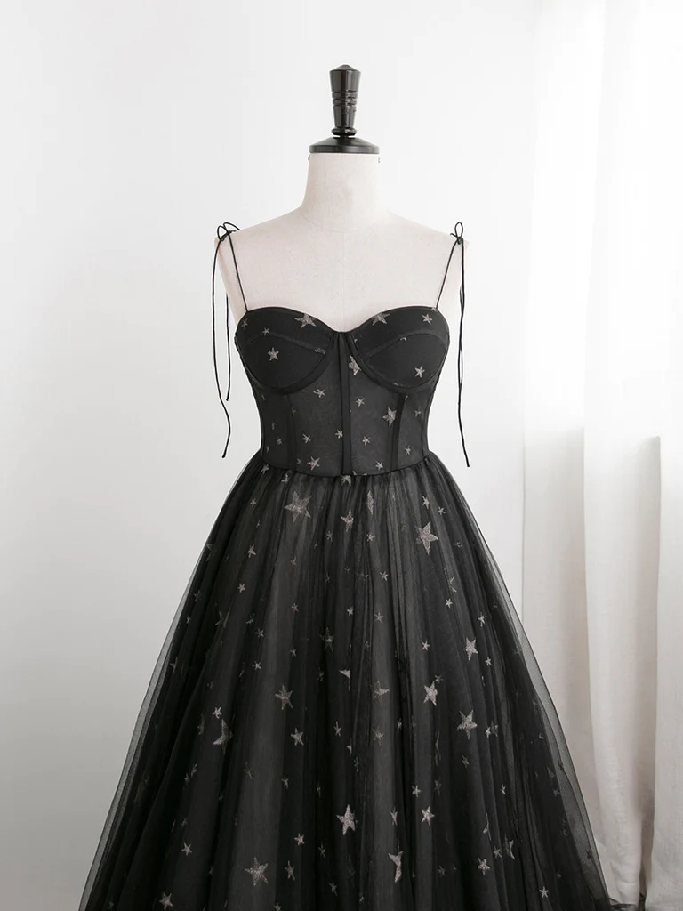 Robe de soirée longue noire à bretelles en tulle, robe de soirée noire formelle, robe de bal gh11