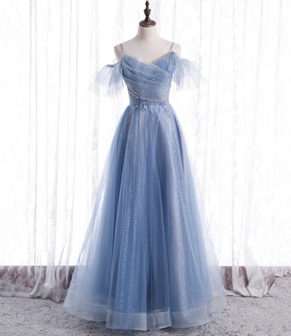 Robe de bal longue en tulle bleu à la mode 8763