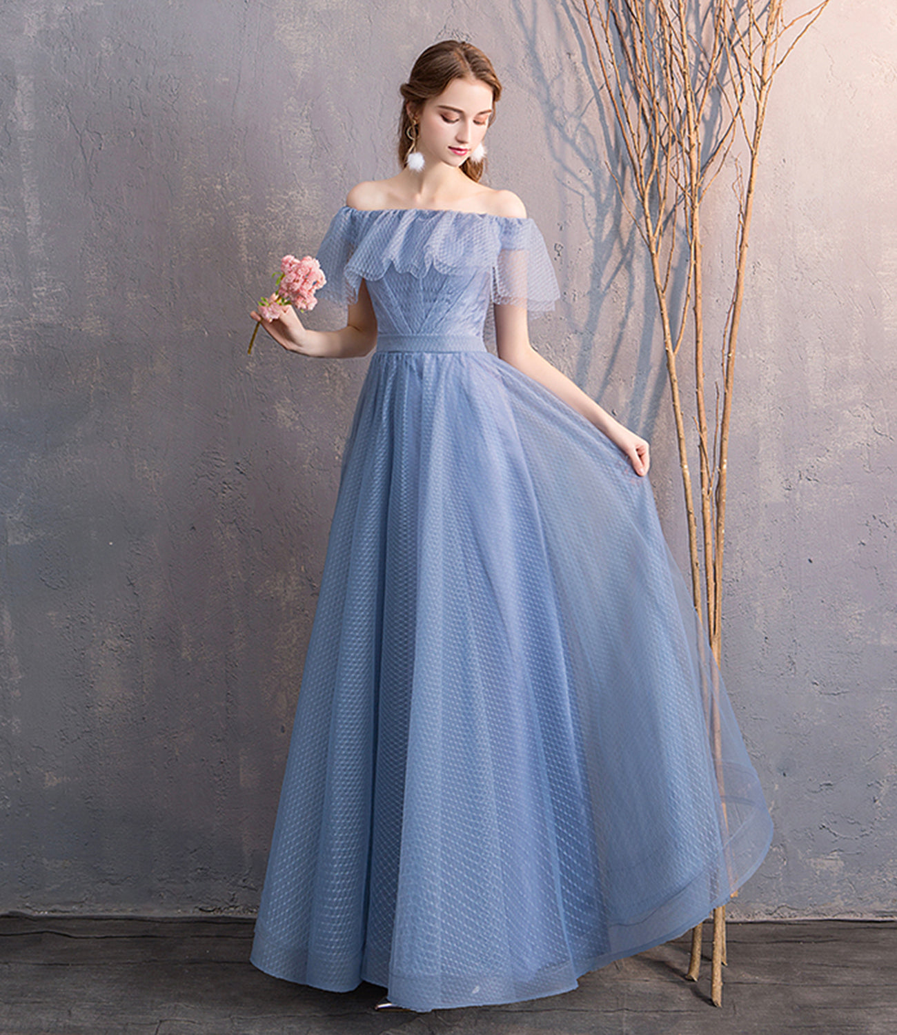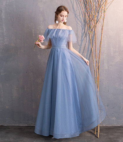 Robe de soirée simple longue en tulle bleu 8866