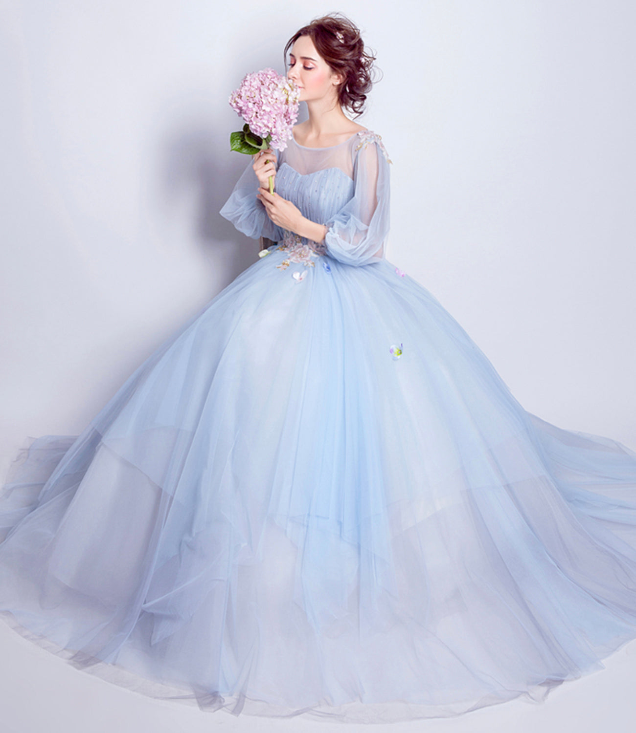 Robe de soirée longue en tulle bleu à paillettes 10360
